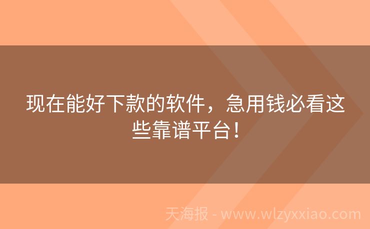 现在能好下款的软件,急用钱必看这些靠谱平台! 现在能好下款的软件大盘点:轻松借钱不踩坑! 最近朋友小李急得直跺脚——他刚换了工作,工资还没到账,房东却催着交房租,手机还摔碎了屏等着换新机。正当他抓耳挠腮时,同事小王神秘兮兮地掏出手机:“试试这个,我上周刚借了5000块,半小时就到账!”小李半信半疑地点开链接,结果真解了燃眉之急。这年头,谁还没个...