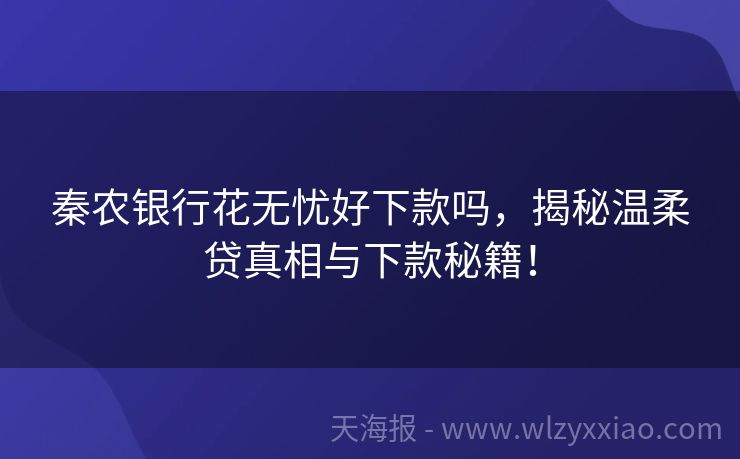 秦农银行花无忧好下款吗,揭秘温柔贷真相与下款秘籍! 秦农银行花无忧好下款吗?揭秘这款“温柔贷”的真相! 最近后台收到好多小伙伴的私信:“秦农银行的花无忧到底好不好下款呀?”“我征信有点小瑕疵能申请吗?”作为金融圈摸爬滚打多年的“贷姐”,今天就带大家扒一扒这款号称“温柔贷”的秦农银行花无忧,顺便穿插几个真实小故事,让你看得明明白白! 秦农银行花无忧是什...