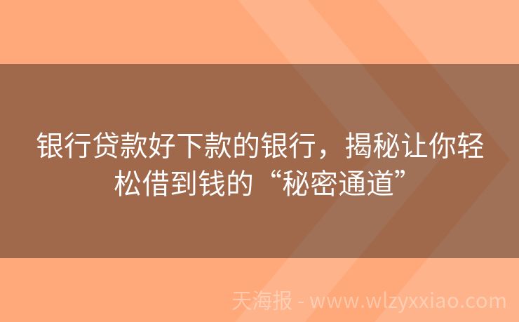 银行贷款好下款的银行,揭秘让你轻松借到钱的“秘密通道” 银行贷款“好下款”的秘密大公开!这些银行让你轻松借到钱 在贷款江湖里,“银行贷款好下款”就像武侠小说里的“绝世秘籍”,总让人忍不住想一探究竟。毕竟,谁不想在急需资金时,能快速从银行拿到钱,解决燃眉之急呢?今天,咱们就来聊聊那些“好下款”的银行,还有贷款过程中的那些小门道,保证让你听得津津有味,还能学...