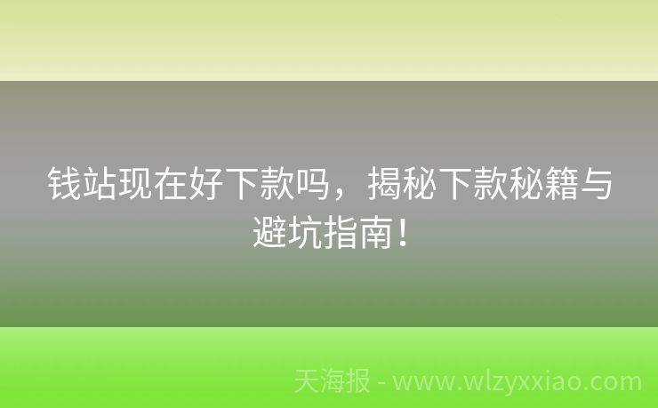 钱站现在好下款吗,揭秘下款秘籍与避坑指南! 钱站现在好下款吗?揭秘贷款江湖的那些事儿 在贷款江湖里,"钱站"这个名字就像江湖中的某个神秘门派,有人夸它"秒批到账",也有人吐槽"门槛高得能登天"。最近,我的闺蜜小琳就因为装修急用钱,在钱站上申请了贷款,结果被拒得怀疑人生。她一边抹眼泪一边问我:"钱站现在到底好不好下款啊?"今天咱们就来聊聊这个话...