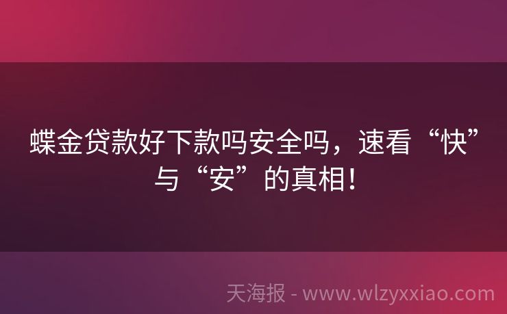 蝶金贷款好下款吗安全吗,速看“快”与“安”的真相! 蝶金贷款好下款吗安全吗?一文读懂这个“神秘选手”! 最近朋友小王在群里吐槽:“急需5000块周转,看到蝶金贷款的广告说‘3分钟申请,1小时到账’,这靠谱吗?”群里瞬间炸锅——有人说“我同事用过,确实快”,也有人提醒“小心高息套路”。今天咱们就化身“贷款侦探”,用专业视角+真实案例,扒一扒蝶金贷款的“...