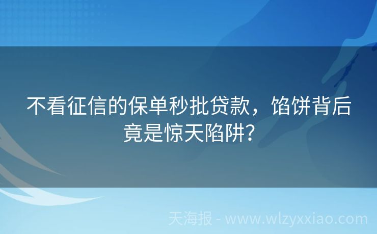 不看征信的保单秒批贷款,馅饼背后竟是惊天陷阱? 不看征信的保单秒批贷款:是馅饼还是陷阱? 在贷款江湖里,“不看征信的保单秒批贷款”就像个神秘传说,时不时在朋友圈、社交平台上冒头,勾得不少急需资金的小伙伴心痒痒。今天咱们就化身贷款侦探,好好扒一扒这神秘贷款背后的秘密! 保单贷款:原来保险还能这样“变现” 先说说保单贷款本身,它可不是什么新鲜玩意儿。...
