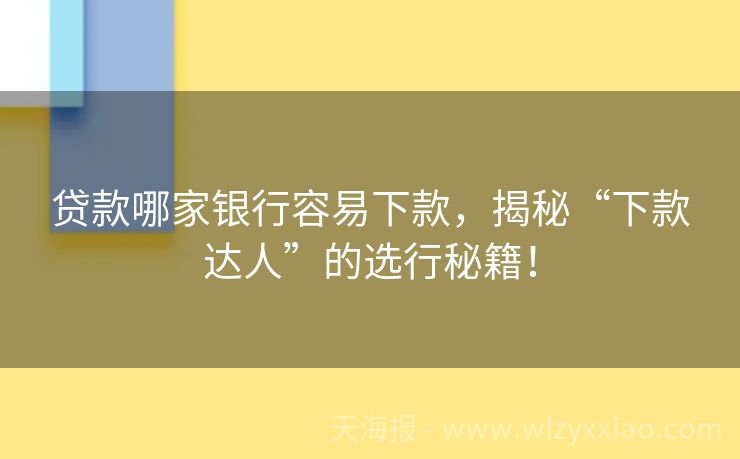 贷款哪家银行容易下款,揭秘“下款达人”的选行秘籍! 贷款哪家银行容易下款?看完这篇秒变“贷款小达人”! 最近朋友小李急得直跳脚,他创业需要一笔启动资金,跑了好几家银行申请贷款,结果不是被拒就是卡在审批环节。看着他愁眉苦脸的样子,我忍不住笑了:“你呀,就是没掌握‘贷款通关秘籍’!”选对银行和产品,贷款下款真的没那么难!今天咱们就来聊聊“贷款哪家银行容易...