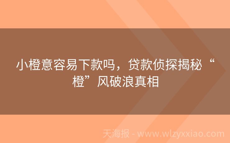 小橙意容易下款吗,贷款侦探揭秘“橙”风破浪真相 小橙意容易下款吗?揭秘“橙”风破浪的贷款真相 “叮咚——”手机屏幕亮起,小王盯着新收到的短信愣了神:“小橙意额度已激活,最高可借5万元!”他挠挠头,想起上周朋友老张刚吐槽“申请了8家平台全被拒”,忍不住嘀咕:“这小橙意,到底是不是‘真橙心’?”别急,今天咱们就化身“贷款侦探”,扒一扒小橙意的下款真相...