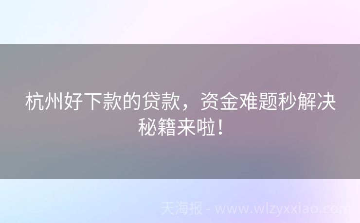 杭州好下款的贷款,资金难题秒解决秘籍来啦! 杭州好下款的贷款:你的资金救星来啦! 在杭州这座充满活力与机遇的城市,无论是创业的小老板,还是刚毕业想租房的小年轻,偶尔都会遇到资金周转的小难题。这时候,找到一款好下款的贷款产品,就像找到了冬日里的暖手宝,温暖又贴心。今天,咱们就来聊聊杭州那些好下款的贷款,让你轻松解决资金烦恼! 小李的“及时雨”贷...