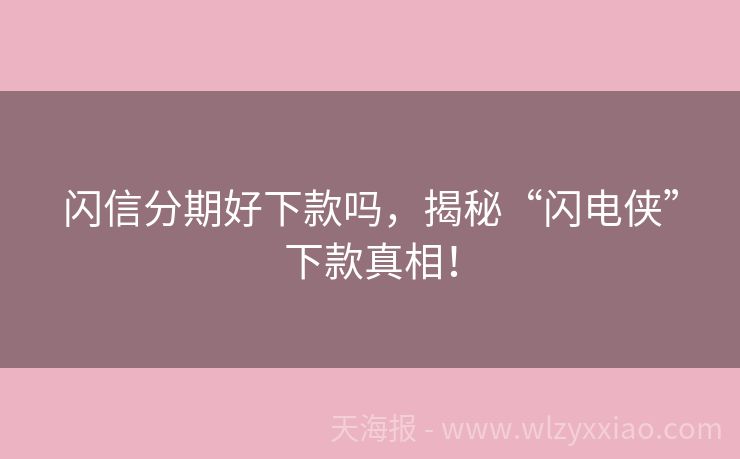 闪信分期好下款吗,揭秘“闪电侠”下款真相! 闪信分期好下款吗?揭秘贷款圈的“闪电侠”真相! 在贷款江湖里,总有些“传说级”产品让人心动——比如号称“5分钟申请、30分钟到账”的闪信分期,听起来就像贷款界的“闪电侠”,专治各种急用钱。但江湖水深,这“闪电侠”到底是救急神器,还是隐藏套路的“伪装者”?今天咱们就唠唠闪信分期的下款真相,顺便穿插个真...