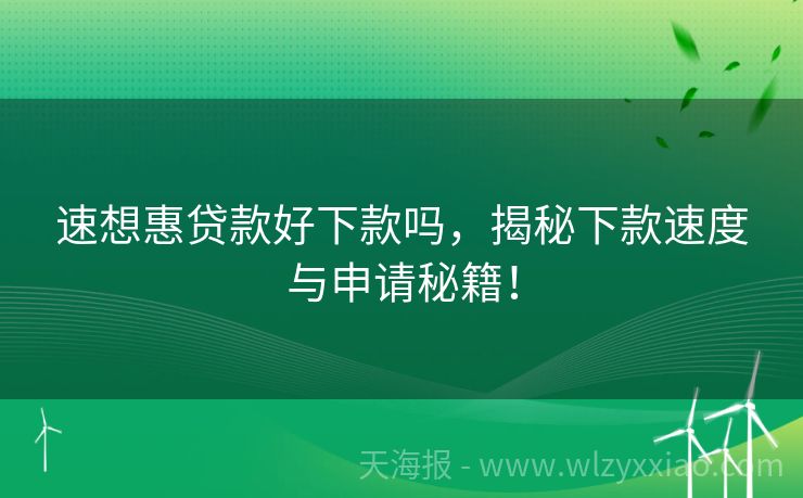 速想惠贷款好下款吗,揭秘下款速度与申请秘籍! 速想惠贷款好下款吗?揭秘贷款界的“速度与激情” 在这个快节奏的时代,连借钱都讲究个“快”字当先!你是不是也经常听到朋友抱怨:“哎呀,我最近急需点钱周转,可申请贷款就像跑马拉松,等得花儿都谢了!”别急,今天咱们就来聊聊一个听起来就让人心动的名字——速想惠贷款,它到底是不是那个能让你秒变“资金小富翁”的...