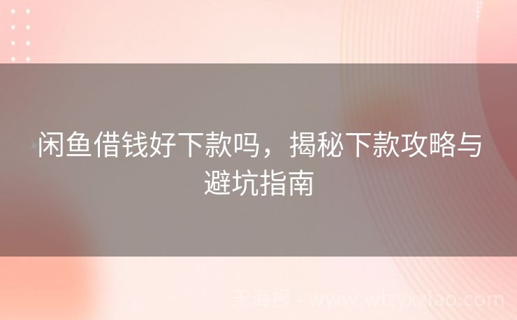 闲鱼借钱好下款吗,揭秘下款攻略与避坑指南 闲鱼借钱好下款吗?揭秘二手平台里的“隐藏”借款攻略 最近闺蜜小芸在闲鱼上卖闲置时,突然收到一条“您有5万元额度待领取”的弹窗,她兴奋地举着手机冲我喊:“这年头连二手平台都能借钱啦?”我扶了扶眼镜,默默打开闲鱼APP——嘿,还真在“我的钱包”里藏着个“信用借”入口!不过这看似方便的借款功能,到底是不是...