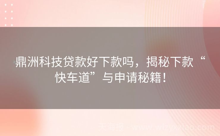 鼎洲科技贷款好下款吗,揭秘下款“快车道”与申请秘籍! 鼎洲科技贷款好下款吗?揭秘贷款界的“小确幸”与“大智慧” 在这个“钱到用时方恨少”的时代,贷款就像是一场及时雨,滋润着每一个急需资金的小心灵。而鼎洲科技贷款,作为众多贷款产品中的一员,究竟是不是那个能让你轻松解渴的“甘露”呢?今天,咱们就来聊聊鼎洲科技贷款的那些事儿,看看它到底好不好下款,顺便分享几...