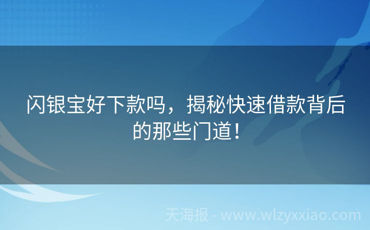 闪银宝好下款吗,揭秘快速借款背后的那些门道! 闪银宝好下款吗?一篇文章带你揭秘“快速借款”背后的真相! 最近,朋友小李在朋友圈吐槽:“急需用钱时,发现好多贷款平台要么审核严得像高考,要么利息高得能吓跑人!”像小李这样临时缺钱又怕踩坑的人不在少数。今天咱们就来聊聊“闪银宝好下款吗”这个话题,顺便扒一扒快速借款背后的门道,让你借钱不迷路! 闪银宝是...