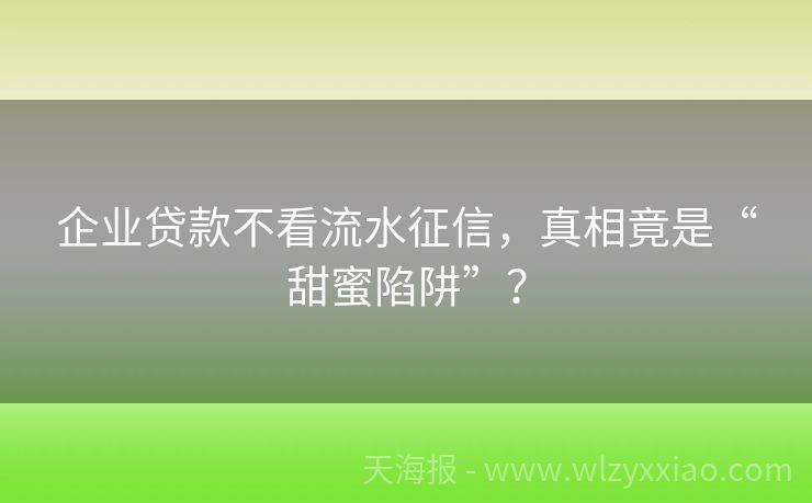 企业贷款不看流水征信,真相竟是“甜蜜陷阱”? 企业贷款不看流水征信?真相来了,别被“馅饼”砸晕头! 在创业江湖里摸爬滚打的朋友们,谁没为资金周转愁秃过头?最近总听人说“企业贷款不看流水征信”,仿佛找到了融资捷径,但真相真的这么美好吗?作为混迹金融圈十年的“老江湖”,今天就带大家扒一扒这个“神秘贷款”的底裤,顺便分享几个真实案例,保证你看完秒变“...