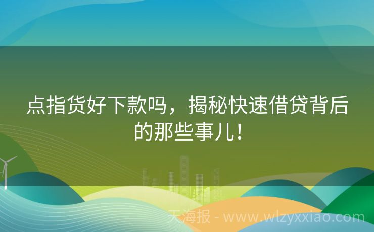 点指货好下款吗,揭秘快速借贷背后的那些事儿! 点指货好下款吗?揭秘那些让你轻松借到钱的小秘密! 在这个“钱到用时方恨少”的时代,谁还没个急需用钱的时候呢?手机应用商店里那些打着“点指货好下款”旗号的贷款APP,就像雨后春笋般冒了出来,让人看得眼花缭乱。但这些所谓的“点指货”真的靠谱吗?今天,咱们就来聊聊这个话题,保证让你听得津津有味,还能学到不...