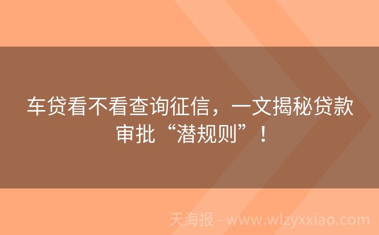 车贷看不看查询征信,一文揭秘贷款审批“潜规则”! 车贷看不看查询征信?一篇文章让你秒懂! 最近,朋友小李想买辆新车代步,可一想到自己平时信用卡偶尔逾期,花呗也偶尔忘记还款,心里就直打鼓:“车贷会不会查我的征信啊?要是查了,我这征信记录会不会影响贷款审批?”相信不少准备申请车贷的小伙伴都有类似的疑问,今天咱们就来聊聊车贷和征信的那些事儿,保证让你听得...