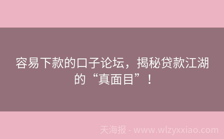 容易下款的口子论坛,揭秘贷款江湖的“真面目”! 容易下款的口子论坛:贷款江湖的“秘籍宝库”还是“坑人陷阱”? 在贷款江湖里,总有一些“神秘角落”被传得神乎其神——容易下款的口子论坛,就像武侠小说里的藏经阁,有人在这里找到“武林秘籍”轻松借到钱,也有人被“假秘籍”坑得血本无归。今天咱们就扒一扒这些论坛的真相,顺便聊聊贷款那些事儿~ 老王的“论坛奇遇...