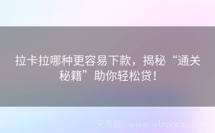 拉卡拉哪种更容易下款,揭秘“通关秘籍”助你轻松贷! 拉卡拉哪种更容易下款?揭秘贷款申请的“通关秘籍” 在贷款江湖里,拉卡拉就像一位“武林高手”,凭借着灵活多样的产品线和便捷的申请流程,成了不少人解决资金难题的“秘密武器”。但面对琳琅满目的产品,很多小伙伴都会问:“拉卡拉哪种更容易下款呀?”别急,今天咱们就一边唠嗑一边揭秘,保证让你看得明明白白! 先讲...