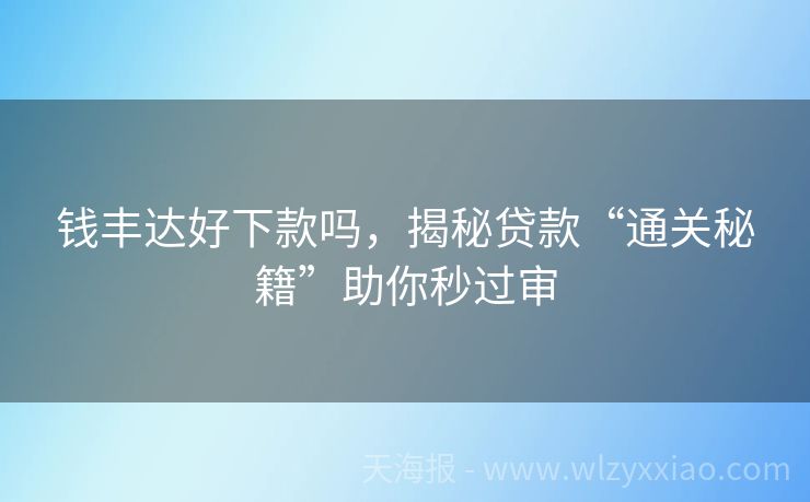 钱丰达好下款吗,揭秘贷款“通关秘籍”助你秒过审 钱丰达好下款吗?揭秘贷款圈的“通关秘籍” “叮咚——”手机屏幕亮起,小李盯着刚收到的短信,眉头皱成了麻花:“您的贷款申请未通过。”这已经是本月第三次被拒了!他叹了口气,翻着通讯录里“钱丰达”的联系方式,心里直犯嘀咕:“钱丰达到底好下款吗?难道真要靠‘玄学’才能借到钱?”别急,今天咱们就化身“贷款侦探...