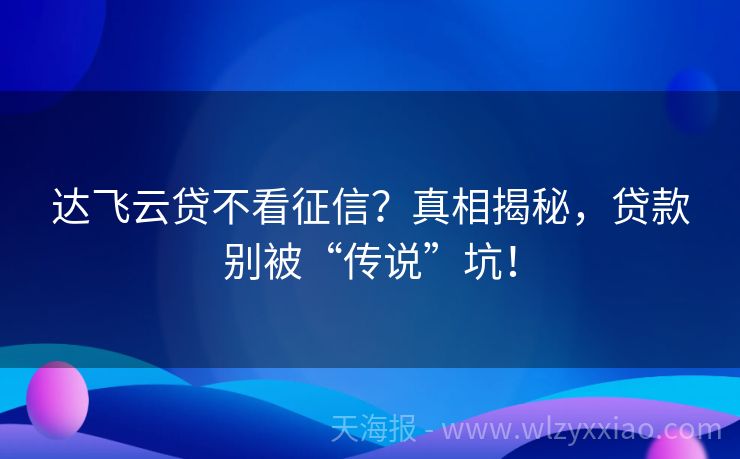 达飞云贷不看征信?真相揭秘,贷款别被“传说”坑! 达飞云贷不看征信?贷款江湖的“传说”与真相大揭秘! 在贷款江湖里,总有一些“传说”让人心动不已,比如“达飞云贷不看征信”这句话,就像一颗糖衣炮弹,让不少征信有点小瑕疵的小伙伴眼睛一亮。但别急着冲上去,咱们先来聊聊这背后的门道,再决定要不要“以身试法”。 达飞云贷真的不看征信吗?别被“传说”忽悠了! ...