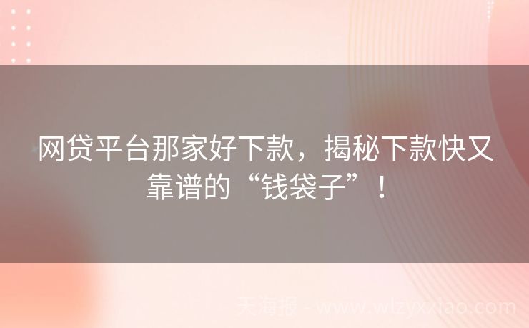 网贷平台那家好下款,揭秘下款快又靠谱的“钱袋子”! 网贷平台哪家强?下款快又靠谱的秘密大公开! 在这个“手机点一点,钱就到账”的时代,网贷平台如雨后春笋般冒出来,让人眼花缭乱。但问题来了,网贷平台哪家好下款呢?别急,今天咱们就来聊聊这个话题,用专业又不失俏皮的方式,帮你找到最适合你的“钱袋子”! 小故事时间:小李的“闪电”借款经历 小李是个刚毕业的大...