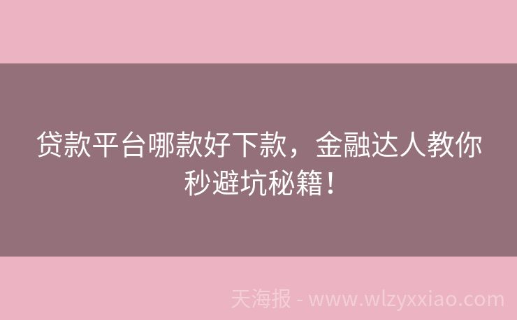 贷款平台哪款好下款,金融达人教你秒避坑秘籍! 贷款平台哪款好下款?金融小达人带你轻松避坑! "急需3000块交房租,结果在5个平台申请都被拒!"上周闺蜜小琳在深夜给我发消息,语气里带着哭腔。作为混迹金融圈5年的"贷款小百科",我立刻明白——又到了急需资金周转的旺季!今天咱们就聊聊"贷款平台哪款好下款"这个话题,顺便教大家如何避开那些"温柔陷阱"...