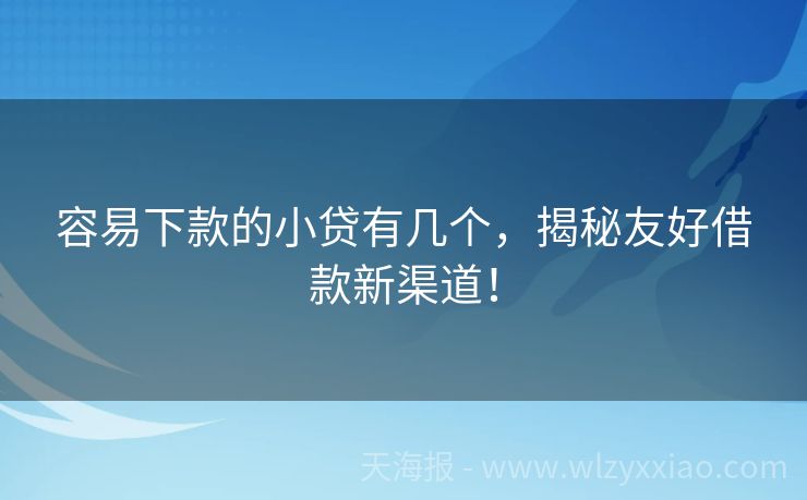 容易下款的小贷有几个,揭秘友好借款新渠道! 容易下款的小贷有几个?揭秘那些“友好”的借款渠道! 在这个快节奏的时代,谁还没个手头紧的时候呢?别担心,今天咱们就来聊聊那些容易下款的[小额信贷]渠道,让你在急需用钱时,能快速找到“救急钱”。不过,在开始之前,先给大家讲个小李最近因为家里突发状况,急需一笔资金周转,他尝试了好几个贷款平台,最后终于找...