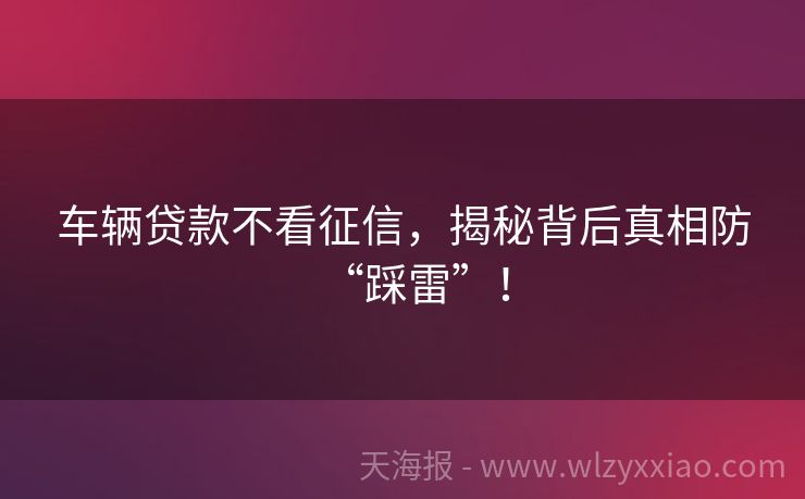 车辆贷款不看征信,揭秘背后真相防“踩雷”! 车辆贷款不看征信?真相大揭秘,小心这些“甜蜜陷阱”! 在贷款江湖里,总有些“神秘传说”让人心动不已,比如“车辆贷款不看征信,秒批下款”!听起来是不是像捡到了大便宜?但别急,作为金融界的“侦探”,我今天就来扒一扒这背后的真相,让你贷款路上不踩坑! 车辆贷款不看征信?是真的吗? 先讲个小李最近手头紧,想...