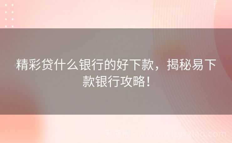 精彩贷什么银行的好下款,揭秘易下款银行攻略! 精彩贷什么银行的好下款?一篇文章让你秒懂! 在贷款江湖里,“精彩贷”就像个神秘小侠客,总能在你需要资金江湖救急时,带着希望闪亮登场。但面对众多银行推出的“精彩贷”产品,到底哪家的更容易下款呢?别急,今天咱们就化身贷款侦探,一起揭开这神秘面纱! 小李的贷款奇遇记 小李是个创业青年,最近项目急需资金周转...