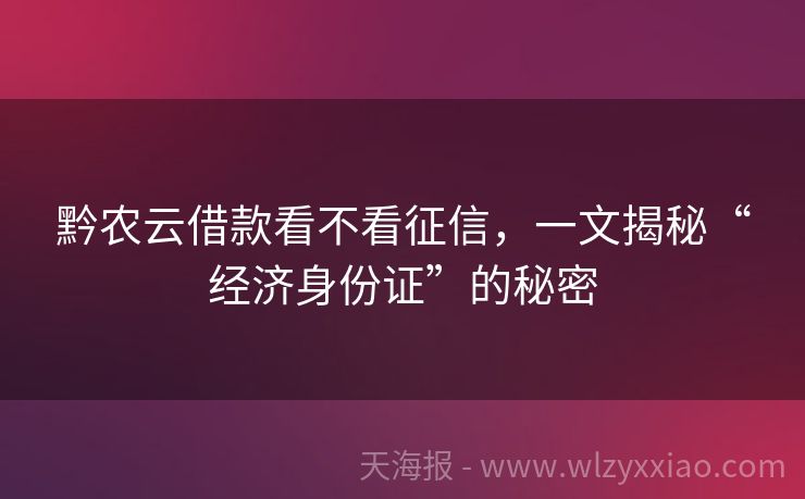 黔农云借款看不看征信,一文揭秘“经济身份证”的秘密 黔农云借款看不看征信?一篇文章全搞定! 在金融江湖里,贷款这事儿就像闯关游戏,征信报告就是你的“通关文牒”。最近好多小伙伴问:“黔农云借款看不看征信呀?”别急,今天咱们就化身金融小侦探,用超接地气的方式扒一扒黔农云的“征信秘密”,还穿插几个真实小故事,保证你看完秒懂! 黔农云借款:征信是“隐形门槛”...