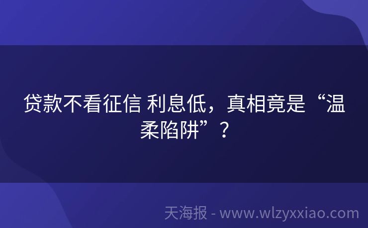 贷款不看征信 利息低,真相竟是“温柔陷阱”? 贷款不看征信还利息低?这波“羊毛”能薅吗? 最近朋友小王急得直挠头——他创业需要10万资金周转,可之前信用卡逾期过,征信报告上“黑历史”赫然在目。跑了几家银行都被拒,某天刷手机时突然看到广告:“不看征信!利息低至3%!秒批10万!”他眼睛都亮了,差点当场下单,结果被媳妇一把拽住:“这靠谱吗?别是坑吧...