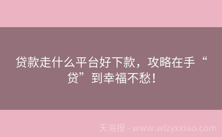 贷款走什么平台好下款,攻略在手“贷”到幸福不愁! 贷款走什么平台好下款?这份攻略让你轻松“贷”到幸福! 最近我的闺蜜小美遇到了一件烦心事——她想开一家属于自己的咖啡馆,但启动资金还差那么一点点。看着她每天对着手机上的贷款广告发愁,我忍不住笑出声:“小傻瓜,贷款可不是随便选个平台就能行的!选对平台,下款才能快准狠!”今天,咱们就来聊聊“贷款走什么平台...