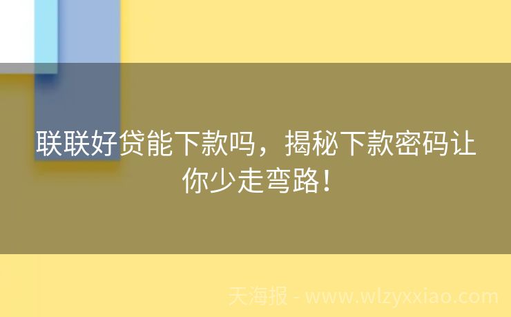 联联好贷能下款吗,揭秘下款密码让你少走弯路! 联联好贷能下款吗?揭秘贷款圈的“下款玄学” 最近后台收到好多小伙伴的私信:“联联好贷能下款吗?”“听说这个平台下款快,是真的吗?”“我征信有点花,能申请吗?”作为金融圈的“人间清醒”,今天咱们就唠唠联联好贷的“下款密码”,顺便穿插几个真实小故事,帮你避开贷款路上的“大坑”! 联联好贷是什么?它真的靠...