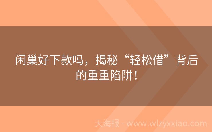 闲巢好下款吗,揭秘“轻松借”背后的重重陷阱! 闲巢好下款吗?揭秘“轻松借”背后的真相! 最近总听朋友念叨“闲巢好下款吗”,仿佛找到了救急的“宝藏秘籍”。但作为金融圈摸爬滚打多年的“老江湖”,我得先泼盆冷水——任何宣称“秒下款”“无门槛”的贷款产品,都可能藏着猫腻!今天咱们就扒一扒“闲巢”这类平台的真实面目,顺便聊聊如何安全借到钱,结尾还有三个超...