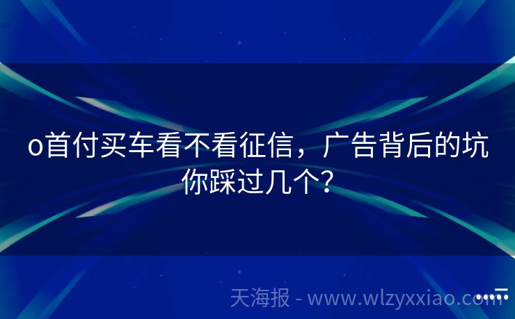 o首付买车看不看征信,广告背后的坑你踩过几个? 0首付买车看不看征信?一文读懂贷款买车那些事儿! "叮咚!"手机弹出一条广告:"0首付开新车!征信瑕疵也能过!"刚工作两年的小王盯着屏幕两眼放光——他攒的钱连首付的零头都不够,难道真的能"白嫖"一辆车?先别急着心动!今天咱们就唠唠0首付买车到底看不看征信,顺便揭秘那些藏在广告背后的"小心机"~ 0首...