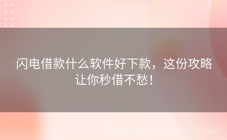 闪电借款什么软件好下款,这份攻略让你秒借不愁! 闪电借款什么软件好下款?这份攻略让你秒变“借款小达人”! 在快节奏的现代生活里,谁还没个急需用钱的时候呢?比如突然要交房租、手机摔坏急需换新,或者临时需要一笔资金周转……这时候,闪电借款就成了很多人的“救星”。但市面上那么多借款软件,到底哪个更容易下款呢?别急,今天咱们就来聊聊这个话题,保证让你看完...