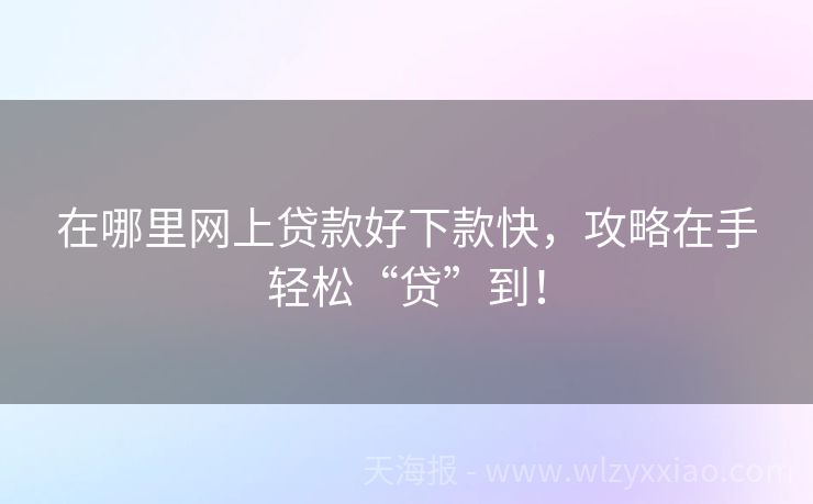 在哪里网上贷款好下款快,攻略在手轻松“贷”到! 在哪里网上贷款好下款快?这份攻略让你轻松“贷”到钱! 在这个“钱到用时方恨少”的时代,网上贷款成了不少人的救急法宝。但网上贷款平台那么多,到底哪里好下款又快呢?别急,今天咱们就来聊聊这个话题,保证让你看完之后,心里有底,贷款不慌! 正规平台是首选,安全又靠谱 说到网上贷款,首先得强调一点:一定要选正...