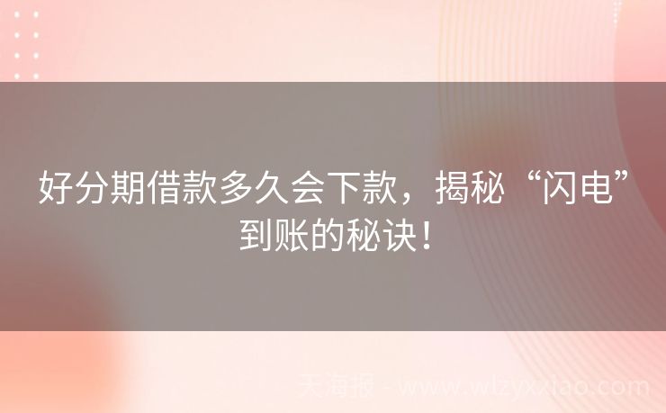 好分期借款多久会下款,揭秘“闪电”到账的秘诀! 好分期借款多久会下款?揭秘资金到账的“时间魔法”! 在快节奏的现代生活里,谁还没个手头紧的时候?小张最近就遇到了这样的烦恼——心仪的相机突然打折,可钱包却瘪瘪的。正当他愁眉苦脸时,朋友推荐了好分期这款借款产品,说是“快速到账,解燃眉之急”。但小张心里犯嘀咕:好分期借款到底多久会下款呢?别急,咱们这就...