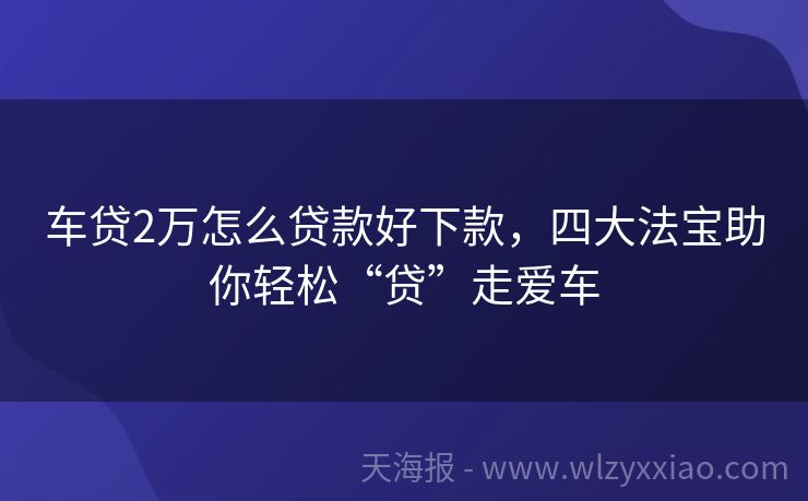 车贷2万怎么贷款好下款,四大法宝助你轻松“贷”走爱车 车贷2万怎么贷款好下款?这份攻略让你轻松“贷”走小车车! 最近我的闺蜜小美遇到了个甜蜜的烦恼——她终于攒够钱想买辆代步小车,可还差2万块车款。看着4S店里的爱车,她急得直转圈:“这车贷2万到底怎么贷才容易下款呀?”别急,今天咱们就来聊聊这个话题,保证让你像小美一样,轻松“贷”走心仪的小车车! 一、车...