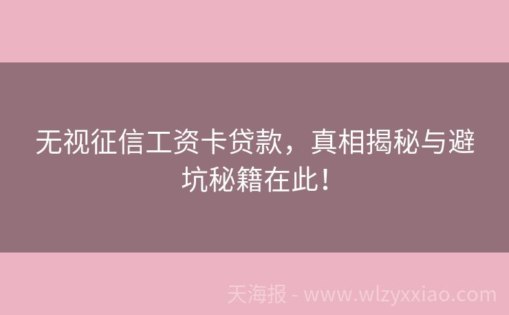 无视征信工资卡贷款,真相揭秘与避坑秘籍在此! 无视征信工资卡贷款:真相与避坑指南来啦! 在贷款江湖里,“无视征信工资卡贷款”就像个神秘传说,总有人跃跃欲试,觉得能轻松拿到钱,可这背后到底藏着啥秘密呢?今天咱就来好好唠唠,顺便分享几个小故事,让你轻松看懂! 先讲个故事,小李最近手头紧,急需一笔钱应急。他在网上看到“无视征信工资卡贷款,秒批下款”的...