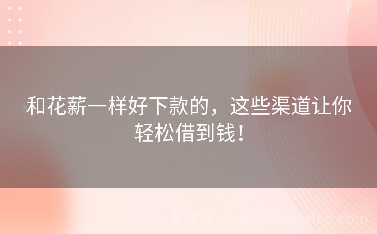 和花薪一样好下款的,这些渠道让你轻松借到钱! 和花薪一样好下款的?这些“友好型”贷款渠道了解一下! 最近收到好多小伙伴私信:“有没有和花薪一样好下款的贷款渠道呀?”作为金融圈摸爬滚打多年的“老江湖”,今天就带大家扒一扒那些审核快、门槛低的“友好型”贷款,顺便插播几个真实小故事,让你轻松get贷款攻略! 小李的“秒到账”奇遇:正规渠道才是王道! ...
