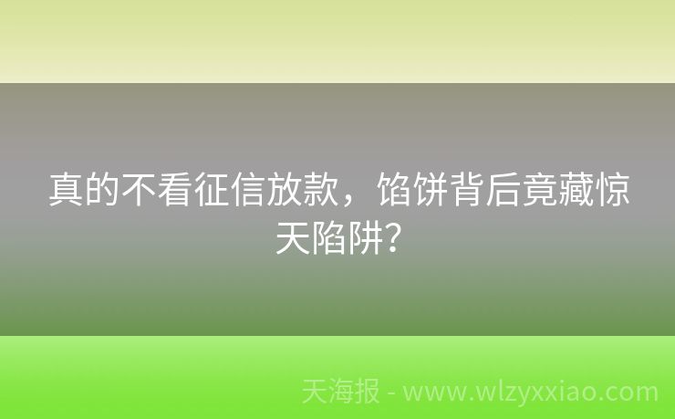 真的不看征信放款,馅饼背后竟藏惊天陷阱? 贷款江湖大揭秘:“真的不看征信放款”是馅饼还是陷阱? 在贷款的江湖里,总有一些“神秘传说”流传,比如“真的不看征信放款”。这听起来就像天上掉馅饼,让不少急需资金的朋友心动不已。但别急,咱们先来听听小李的故事,再慢慢揭开这“神秘面纱”。 小李是个创业青年,最近资金周转出了点问题,急需一笔钱来救急。他在...