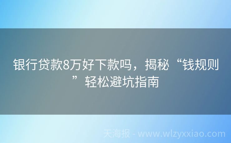 银行贷款8万好下款吗,揭秘“钱规则”轻松避坑指南 银行贷款8万好下款吗?一篇文章让你秒懂“钱”规则! 最近朋友小李遇到了件头疼事——想给家里换辆代步车,预算8万,可手头现金不够,跑来问我:“银行贷款8万好下款吗?”这个问题像极了“中午吃啥”的终极拷问,看似简单,实则暗藏玄机!今天咱们就化身“贷款小侦探”,用通俗易懂的方式聊聊银行贷款8万到底难不难,...