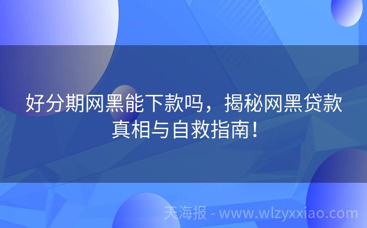 好分期网黑能下款吗,揭秘网黑贷款真相与自救指南! 好分期网黑能下款吗?一篇文章给你讲透“黑户贷款”的真相! 最近总有人问我:“我是网黑,好分期这种平台还能下款吗?”每次听到这个问题,我都忍不住想先讲个故事——小王去年因为创业失败,欠了三家网贷没还,征信报告上全是逾期记录,成了标准的“网黑”。后来他急需资金周转,看到某平台广告说“黑户也能下款”,结果...