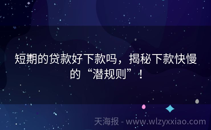 短期的贷款好下款吗,揭秘下款快慢的“潜规则”! 短期的贷款好下款吗?揭秘那些“快如闪电”的贷款真相! 在这个“钱到用时方恨少”的时代,短期贷款就像是一场及时雨,总能在我们手头紧巴巴的时候,带来一丝丝滋润。这短期的贷款,真的那么好下款吗?别急,咱们今天就来聊聊这个话题,保证让你听得津津有味,还能学到不少实用小知识! 短期贷款的“快”与“慢”:一场速...