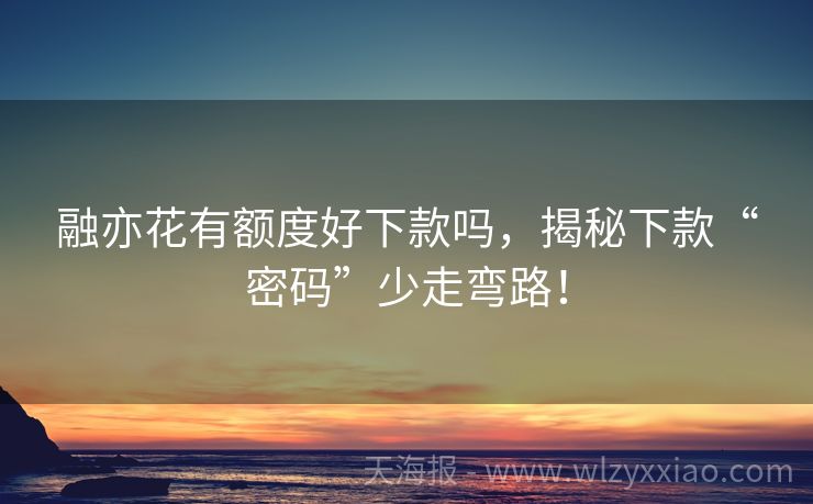 融亦花有额度好下款吗,揭秘下款“密码”少走弯路! 融亦花有额度好下款吗?揭秘贷款圈的“甜与坑” 最近,后台收到好多小伙伴的私信:“融亦花有额度是不是就能秒下款?”“额度高是不是稳了?”甚至有人问:“我信用有点花,融亦花能救急吗?”别急!今天咱们就化身“贷款侦探”,用真实案例+干货知识,把融亦花的“下款密码”扒个底朝天! 融亦花额度≠“免死金牌”,下...