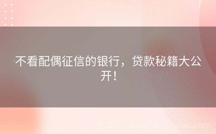不看配偶征信的银行,贷款秘籍大公开! 贷款江湖秘籍:那些“不看配偶征信”的银行到底藏着啥玄机? 最近闺蜜小美急得直跺脚——她老公去年创业失败,信用卡逾期了8次,现在小美想申请装修贷款,却被银行告知“配偶征信不良,贷款被拒”。她气呼呼地吐槽:“明明是我自己赚钱还贷,凭啥要查我老公的征信?”其实啊,这背后藏着银行风控的“小心机”。今天咱们就...