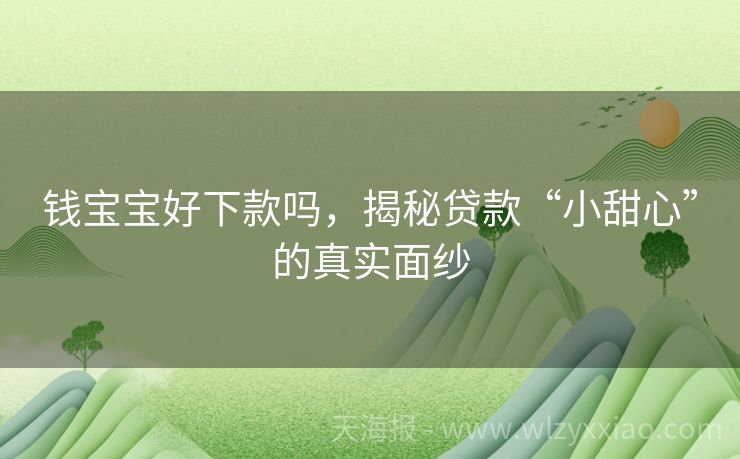 钱宝宝好下款吗,揭秘贷款“小甜心”的真实面纱 钱宝宝好下款吗?揭秘贷款界的“小甜心”真相 在贷款江湖里,总有些名字听起来就让人心生欢喜,“钱宝宝”就是其中之一。它像是个带着笑脸的小精灵,总在你资金紧张时蹦出来说:“嘿,需要帮忙吗?”但这位“钱宝宝”真的那么好说话,下款真的那么容易吗?今天,咱们就来聊聊这个话题,用几个小故事和干货问答,带你揭开“...
