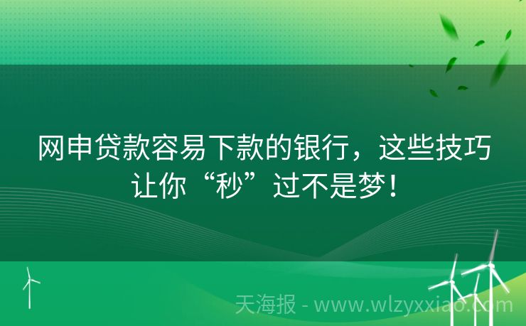 网申贷款容易下款的银行,这些技巧让你“秒”过不是梦! 网申贷款容易下款的银行:手把手教你“秒”过审核! “叮咚——”手机屏幕亮起,小王盯着刚收到的短信,嘴角差点咧到耳根:“您的贷款申请已通过,2万元即将到账!”他忍不住跳起来,对着空气挥拳——这已经是本月第三次成功“网申”贷款了!从被拒到“秒过”,小王的故事可不是运气爆棚,而是掌握了网申贷款的“通关密码...