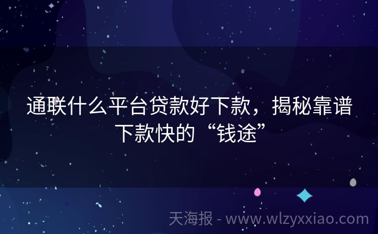 通联什么平台贷款好下款,揭秘靠谱下款快的“钱途” 通联什么平台贷款好下款?一篇文章帮你搞定“钱袋子”难题! 最近,朋友小李遇到了点小麻烦——想给家里换个新冰箱,可工资还没发,手头紧巴巴的。他挠着头问我:“现在通联什么平台贷款好下款啊?我急用钱,又怕踩坑!”嘿,这不就问对人了嘛!作为金融圈的“老江湖”,今天就来给大家扒一扒那些靠谱又好下款的贷款平台,...