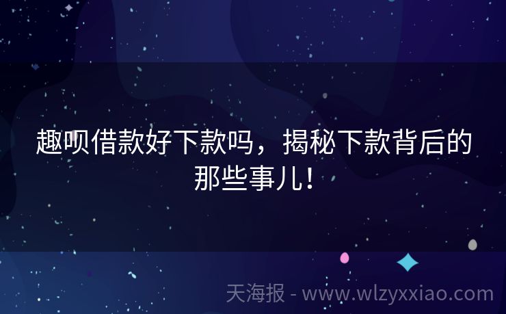 趣呗借款好下款吗,揭秘下款背后的那些事儿! 趣呗借款好下款吗?一篇文章带你揭秘! 在这个“钱到用时方恨少”的时代,谁还没个急需用钱的时候呢?手机里装着各种借款APP,但哪个才是真靠谱?今天咱们就来聊聊趣呗借款,看看它是不是那个能让你秒变“有钱人”的神奇存在! 趣呗借款初印象:是救星还是坑? 趣呗借款,听起来就像是个能让你“趣”享生活的金融小助...