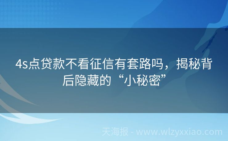 4s点贷款不看征信有套路吗,揭秘背后隐藏的“小秘密” 4S店贷款不看征信?这背后的小九九你得懂! 嘿,小伙伴们,你们有没有遇到过这种情况?去4S店看车,销售小姐姐笑眯眯地跟你说:“咱们这贷款超方便,不看征信哦!”是不是瞬间觉得买车门槛低了不少?但别急着乐,今天咱们就来聊聊这“4S店贷款不看征信”背后的那些事儿,看看是不是真的有那么美! 一、不看征信?是...