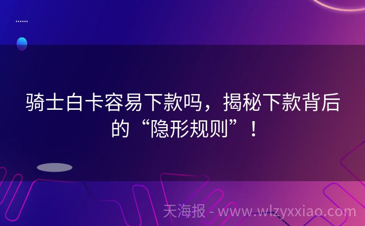 骑士白卡容易下款吗,揭秘下款背后的“隐形规则”! 骑士白卡容易下款吗?揭秘贷款圈的“骑士传说” 在贷款江湖里,总有些“传说级”产品让人又爱又恨——比如今天要聊的骑士白卡。有人说它是“秒批神器”,也有人吐槽“申请十次拒十次”。到底骑士白卡容易下款吗?别急,咱们先讲个故事,再慢慢拆解! 小王的“骑士奇遇记”:从秒拒到下款的24小时 上周,刚毕业的小王急...